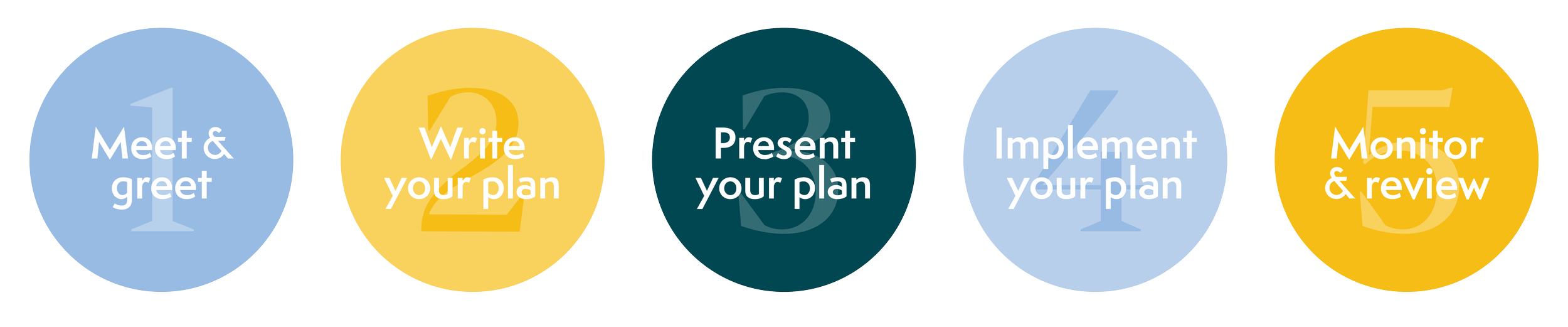 With our 5 step process, we create solid long term financial plans for our clients and then work with them to implement their plan.